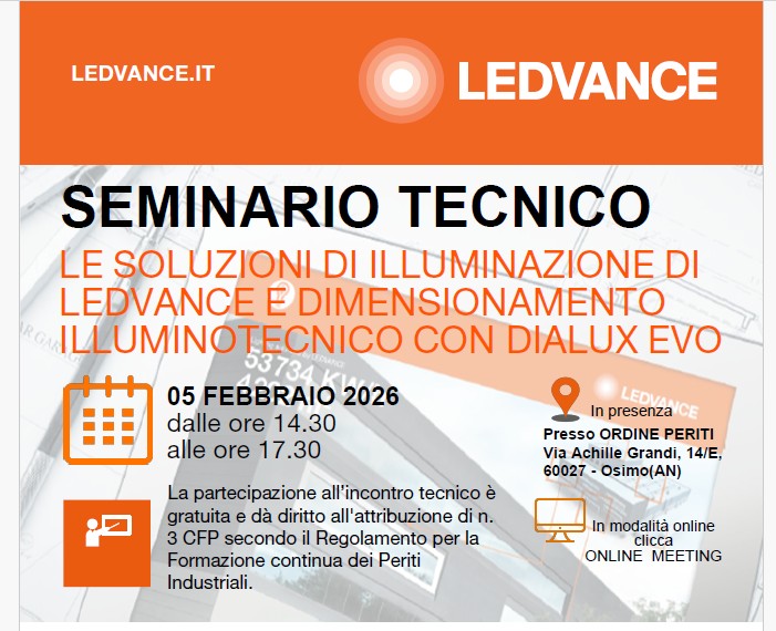 SEMINARIO TECNICO "LE SOLUZIONI DI ILLUMINAZIONE DI LEDVANCEE DIMENSIONAMENTO ILLUMINOTECNICO CON DIALUX EVO" (3 CFP)